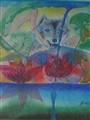 " vargen vid vatten" akvarell